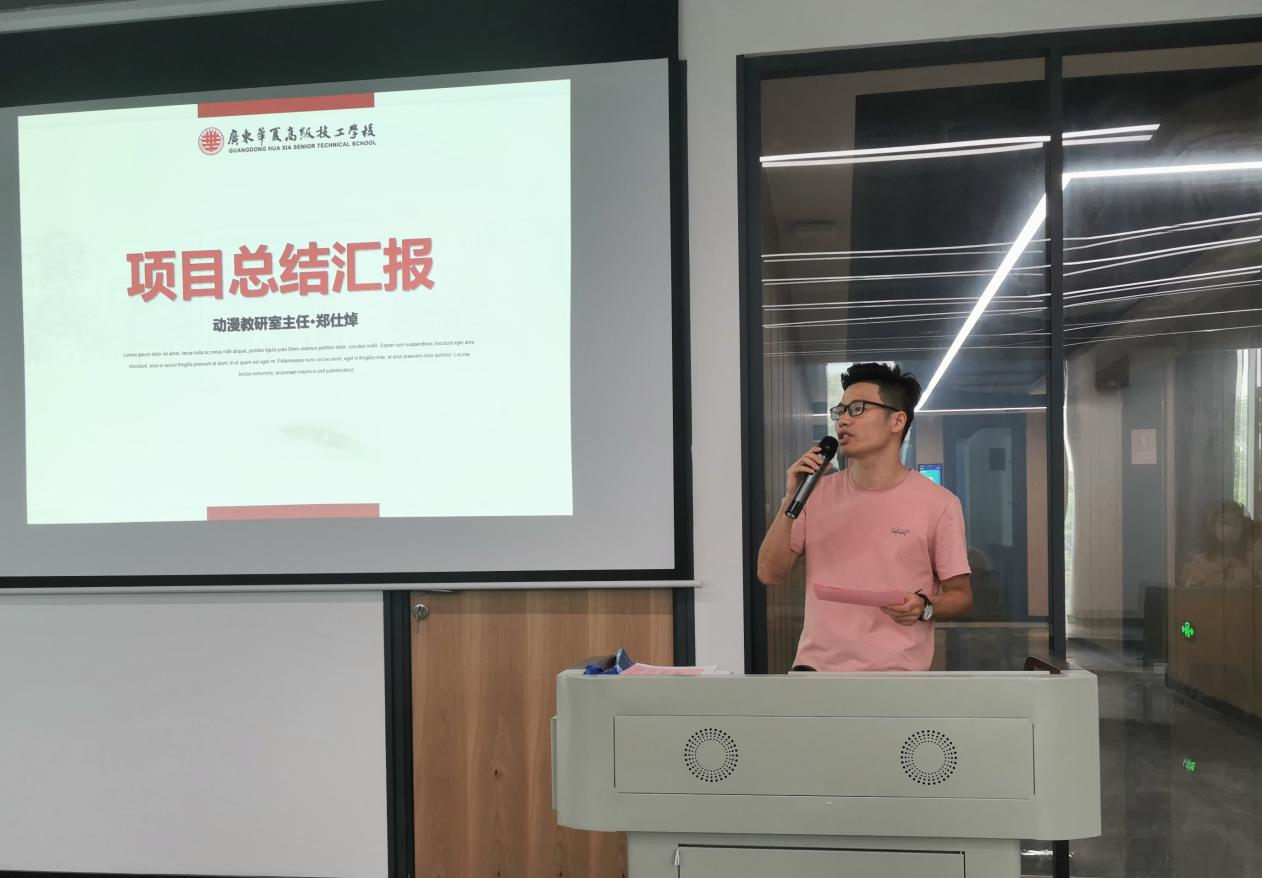 动漫教研室主任郑仕焯作本次项目工作总结,重点汇报了本次项目在计划、实施、取得的成效及后期需要改进等方面的情况