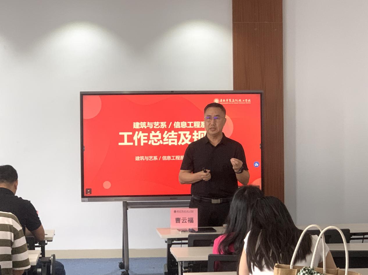 为进一步推进系部各项工作高效开展,理清工作思路,聚焦工作实效,6月6日,建筑与艺术系、信息工程系在教师发展中心召开工作管理会议。系主任曹云福、系副主任郑仕焯、系德育副主任梁华君、各教研室主任及全系教职工参加了此次会议。会议由系副主任郑仕焯主持。