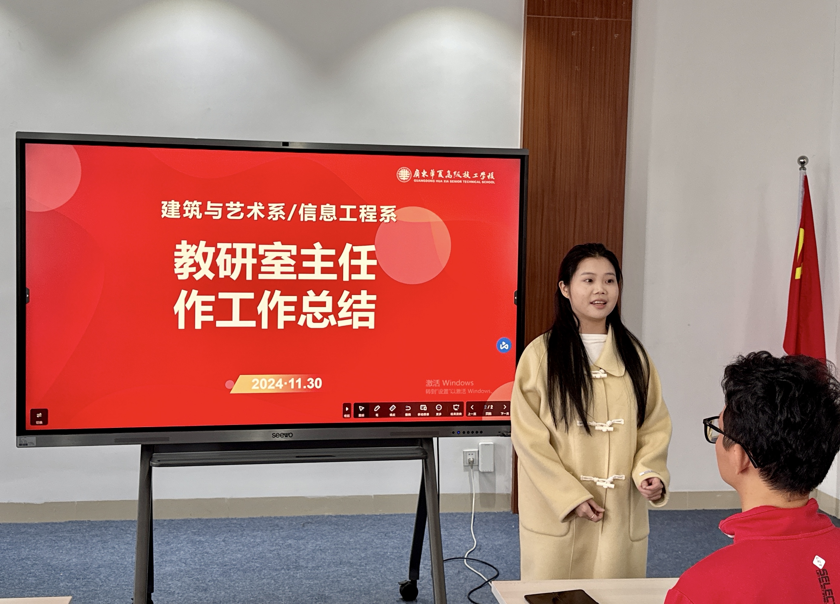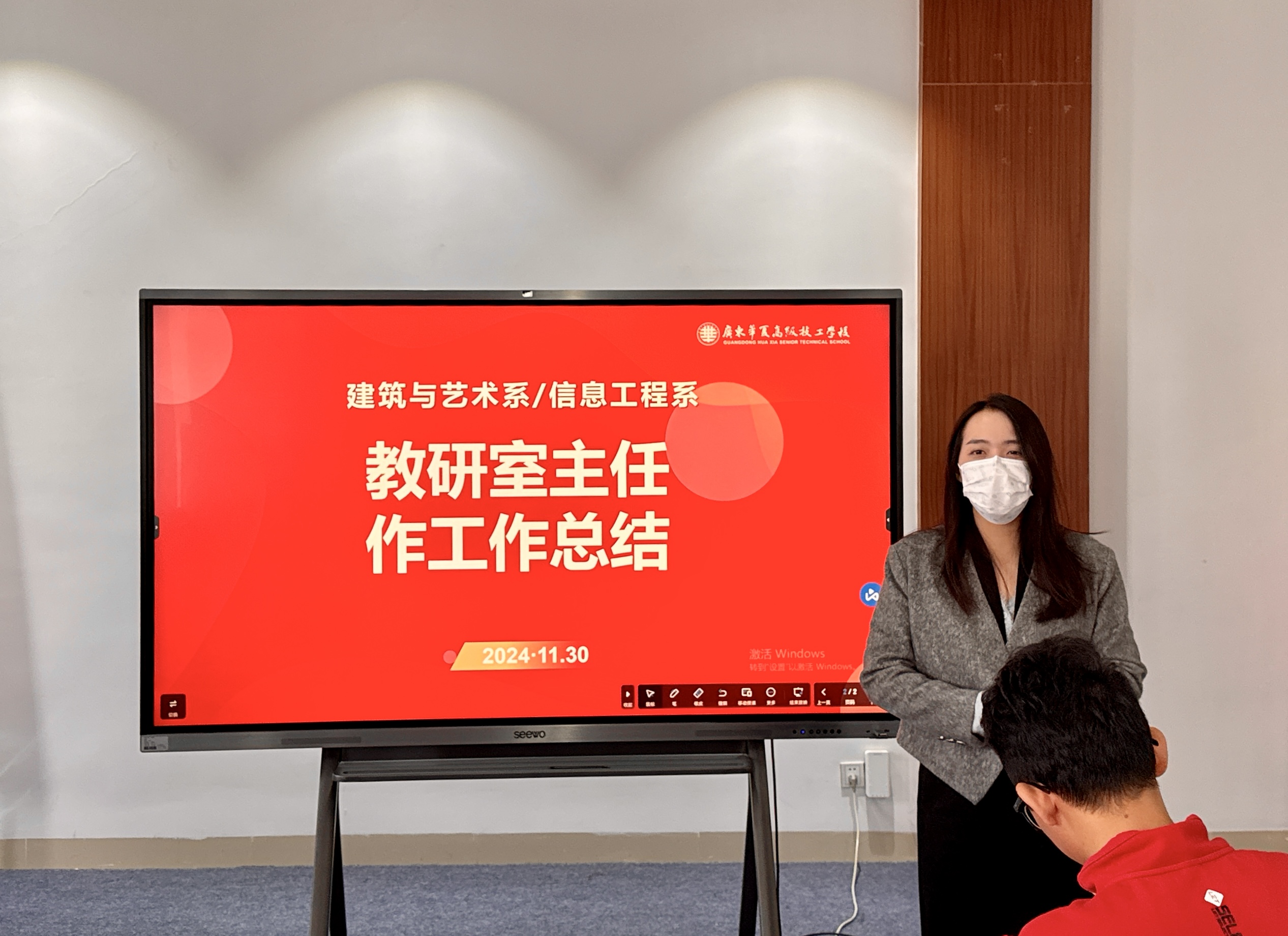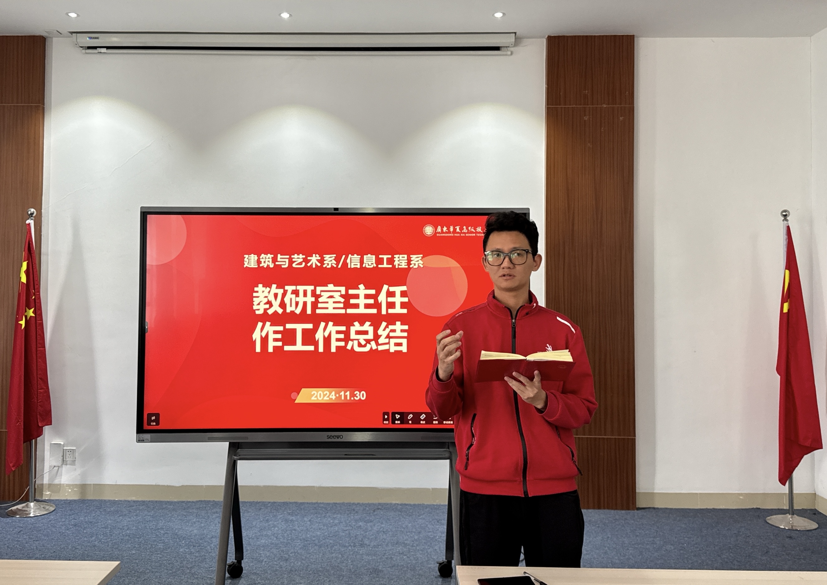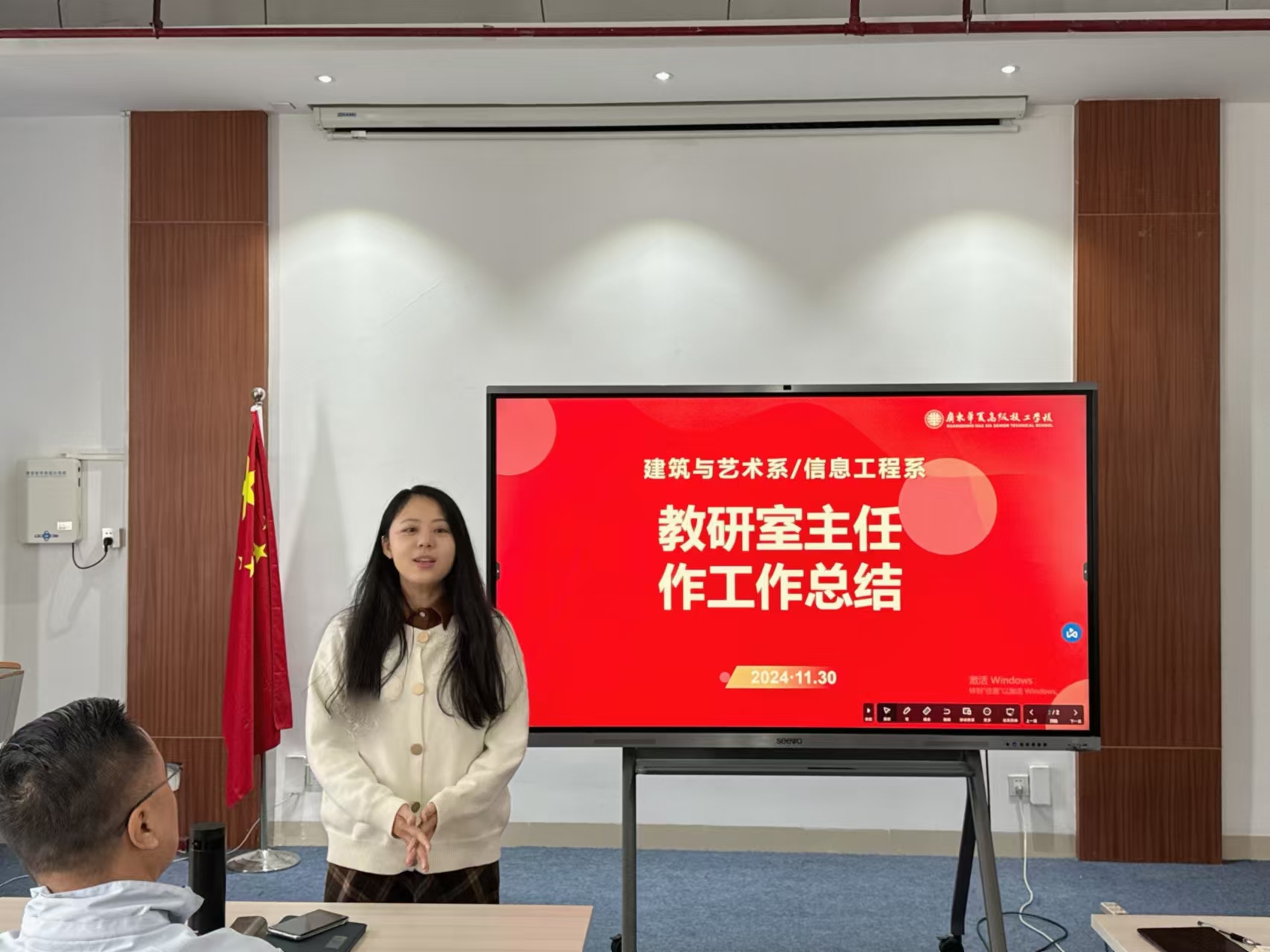 郑仕焯主任总结汇报了11月工作。他强调,按照学校和系部工作重点,建筑与艺术系、信息工程系11月协同推进、狠抓落实,各项工作有序推进,取得了阶段性的成果,肯定了各教研室的辛勤付出,也指出了目前存在的短板与痛点,并针对当前存在的问题提出了相应工作思路。