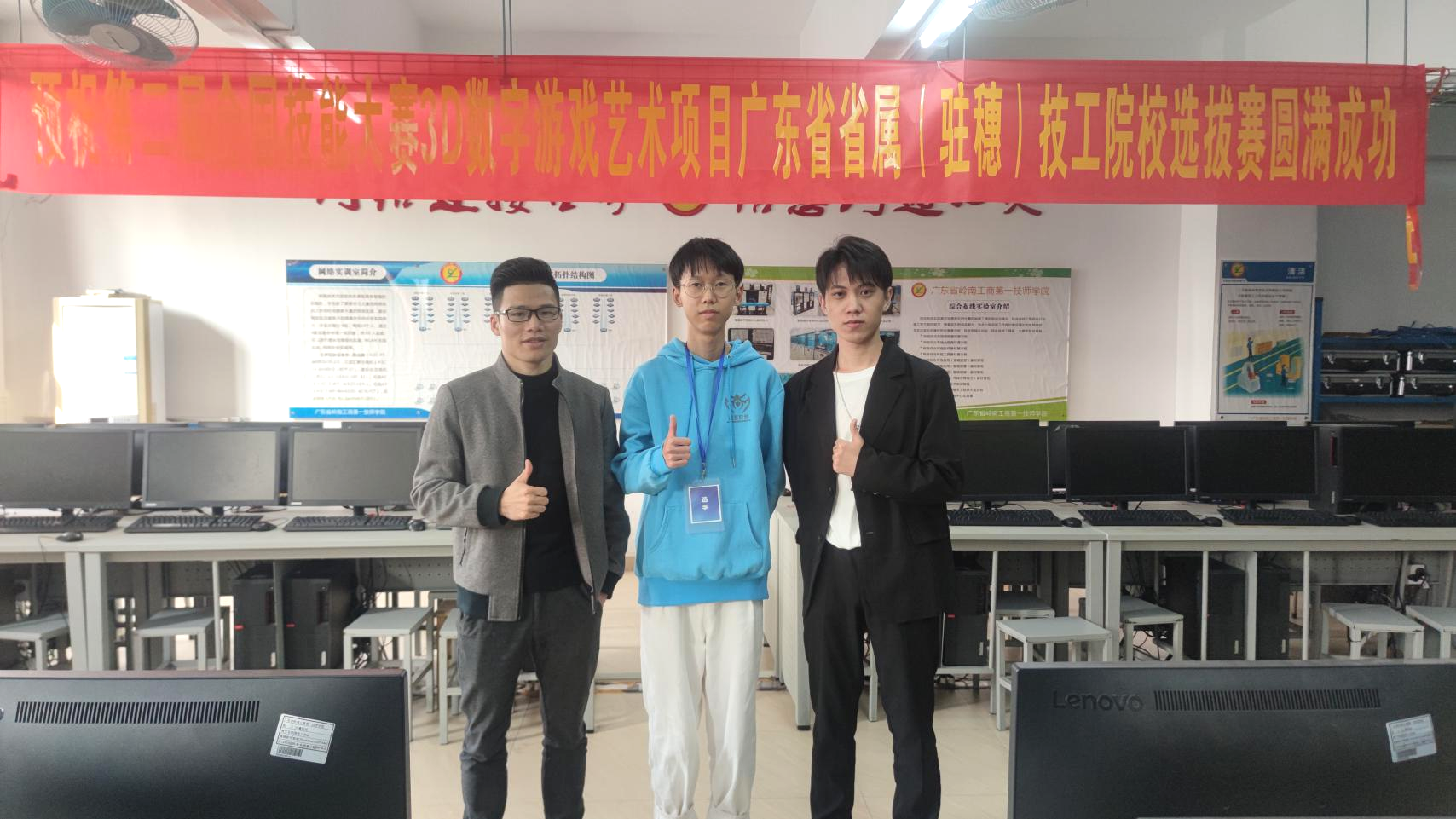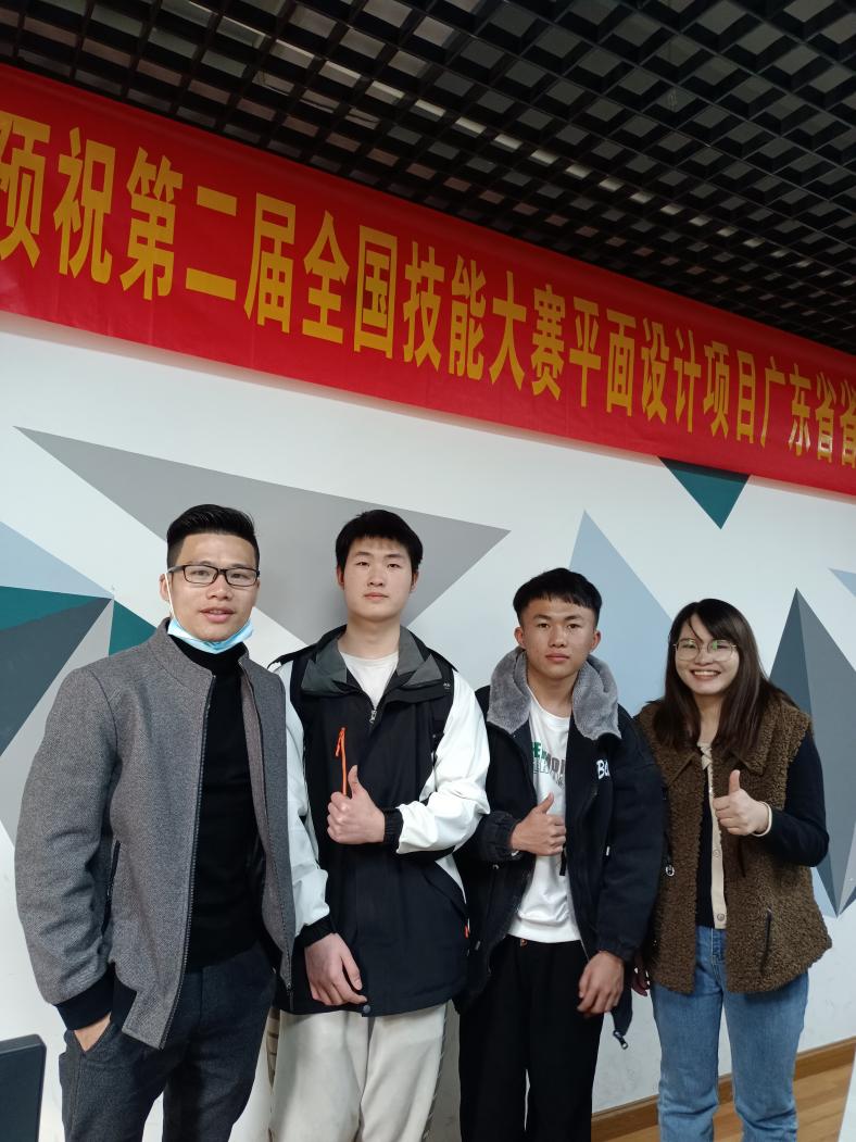 在本赛事广东省省属学校选拔赛中,为加强我校专业技能教学,提高技术技能型人才培养质量,我校黄健伟、苏嘉俊参加了“平面设计技术”与“3D数字游戏”两个项目。两名选手在本次两项选拔赛中,均取得第二名的优异成绩。
