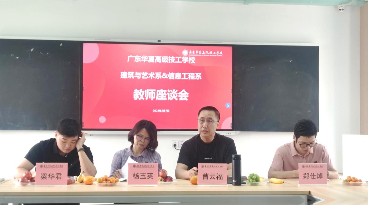 为更好地了解教师的教学需求,并获取他们对教学管理工作的意见和建议,关注老师在教学过程中可能遇到的困难和挑战,以便为全体教师提供更贴心、更周到的服务,我系于5月7日上午在教学楼5栋403室召开了教师座谈会,学校督导质管办督导杨玉英教授、建筑与艺术系和信息工程系主任曹云福、副主任郑仕焯、梁华君、系部部分教师代表参加座谈会,座谈会由郑仕焯主持。