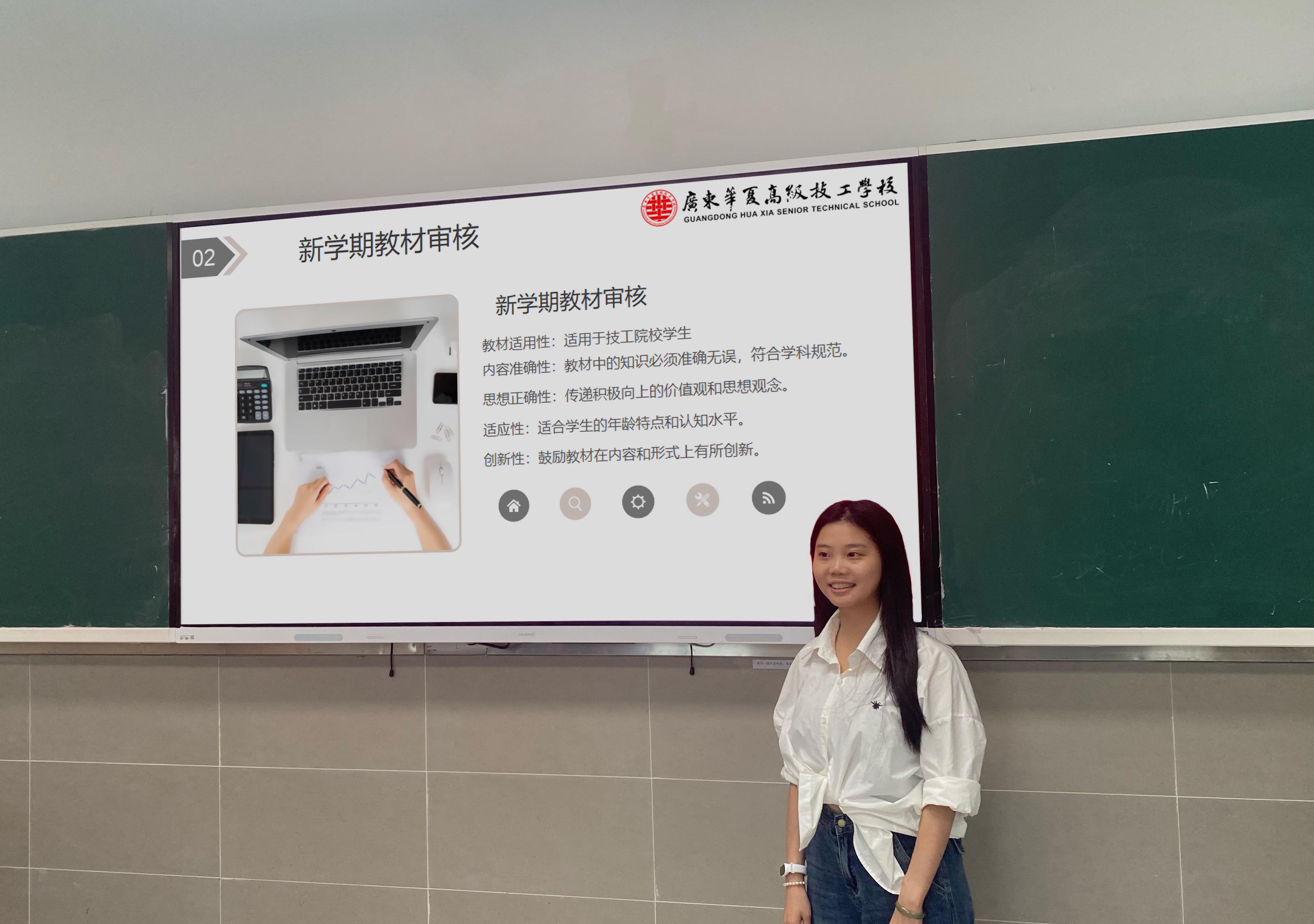信息网络教研室主任方婉婷为全系教师介绍了新学期教材审核和教学管理工作的要点。她指出,教材是教学工作的基础,其质量和适用性直接影响到学生的学习效果。因此,她要求全体教师认真履行教材审核职责,确保所选用教材符合课程标准和教学要求。